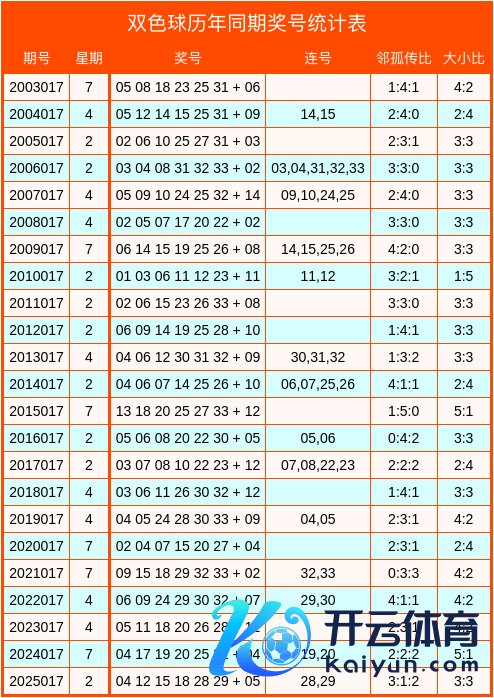 双色球积年同时数据统计表