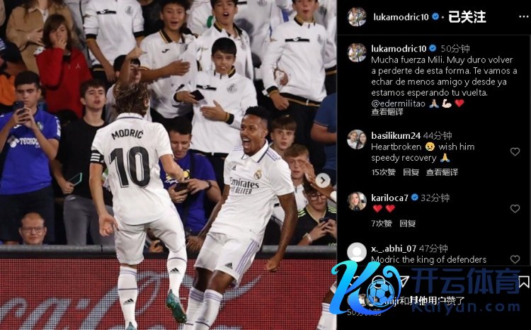 11月12日讯 米利唐日前际遇重伤,皇马中场莫德里奇发文抒发祝颂。