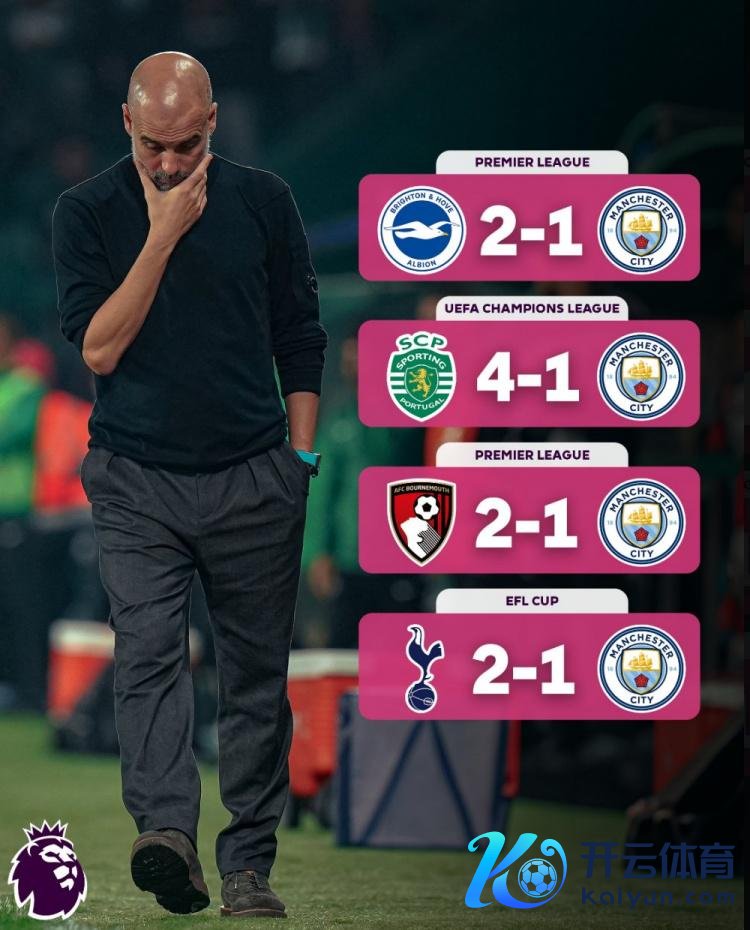 曼城近期战绩欠安,各项赛事际遇4连败。这亦然瓜迪奥拉糊口初度带队4连败。