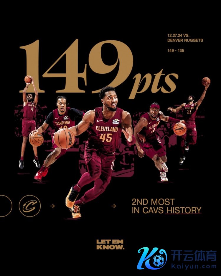 骑士官方晒出数据,昨日球队单场轰下149分,创造了队史单场得分第二高记录!