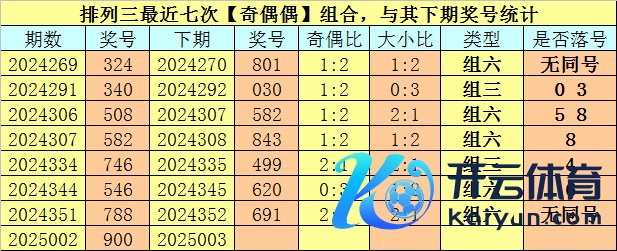 开奖总结:摆设三第2025002期开奖号码为:900。奖号类型为:组三,大小类型为:大小小FIFA买球网体育信息,奇偶类型为:奇偶偶,无重号。