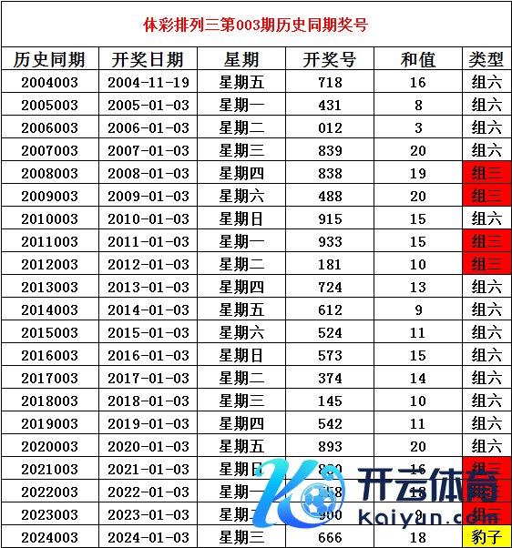 2025年1月3日陈列三第003期开奖,历史同技能别开出奖号: