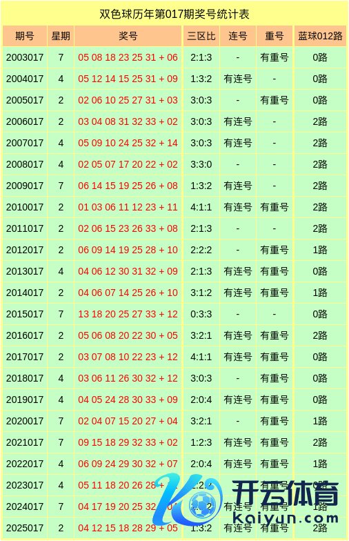 红球重号:在第017期历史同时开奖中,有16期奖号包含了重号,重号出现比例为69.57%,本年同时瞻望出现1个客岁第017期红球重号,参考重号30。