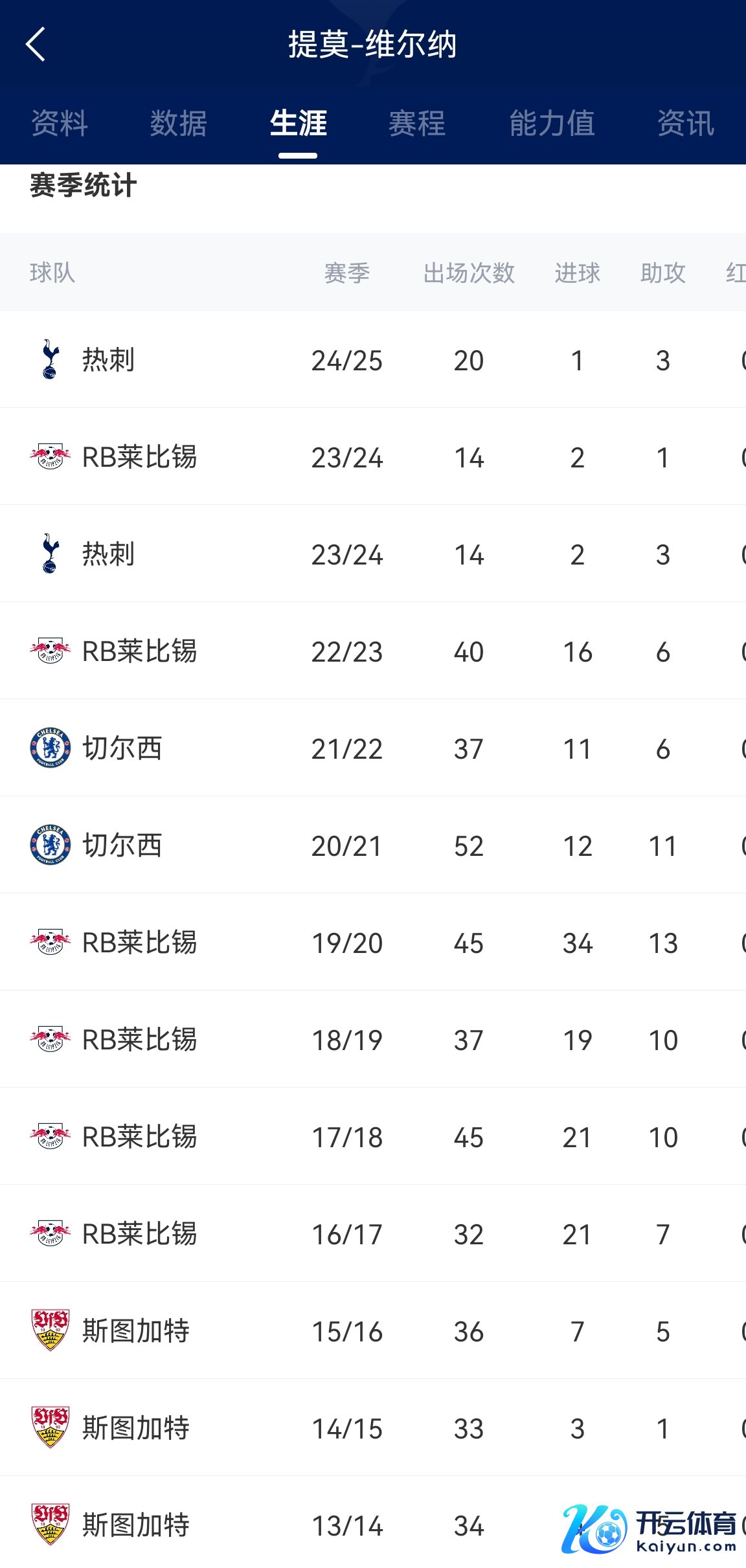 2019/20赛季,24岁的维尔纳在莱比锡打出45场34球13助攻的巅峰数据,随后切尔西破耗5500万欧元将其签下。他的身价也在2020年3月达到最岑岭:8000万欧元。