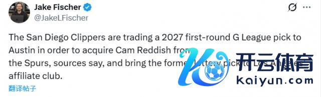 另据名记 Fischer 报谈,雷迪什被马刺的发展定约附庸球队奥斯汀马刺认领。随后,奥斯汀马刺把雷迪什来回至圣迭戈快船(快船发展定约附庸球队),交流 2027 年发展定约选秀大会的一个首轮签。