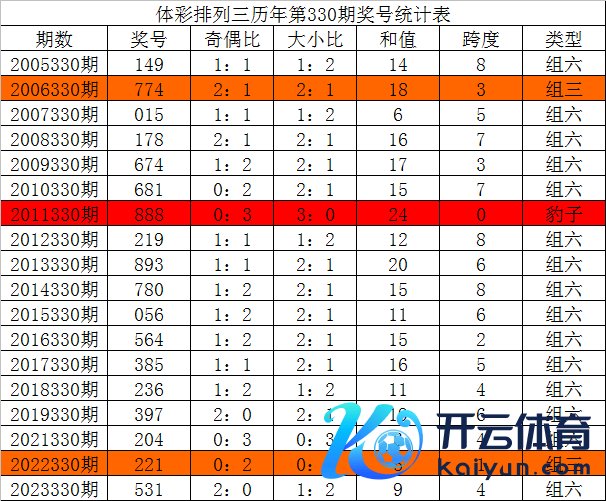 体彩罗列三积年第330期开出奖号诀别为:149、774、015、178、674、681、888、219、893、780、056、564、385、236、397、204、221、531。统计详见下表: