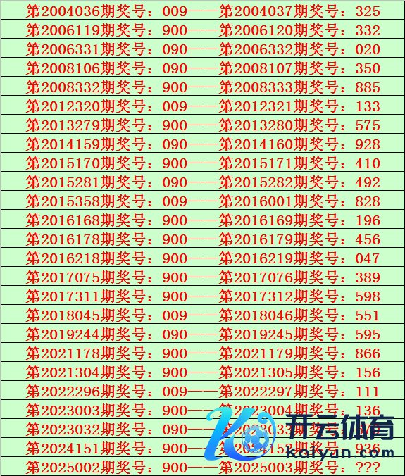 罗列三第2025002期开出奖号900,该号码历史上组选出现25次,前24次开出之后期下期奖号为:325、332、020、350、885、133、575、928、410、492、828、196、456、047、389、598、551、595、866、156、111、136、679、936,详见下表: