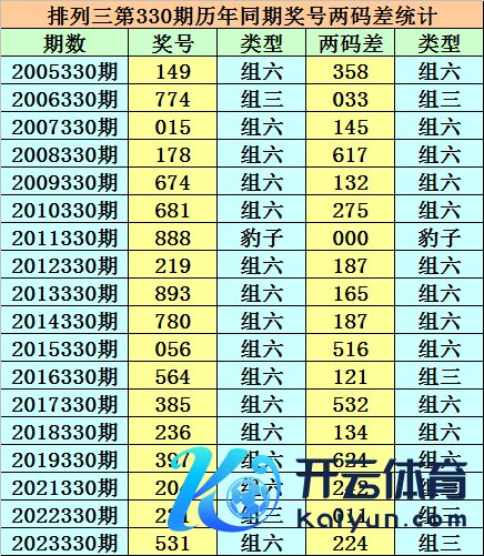 在积年开奖中,两码差开出年限辞别为:1出现10年,2出现7年,5出现6年,3、4出现5年,6、7出现4年,0、8出现3年,9出现0年,第2024330期展望两码差出现:1、2、3。