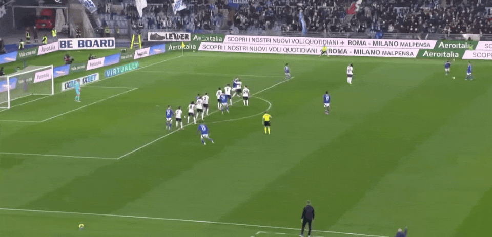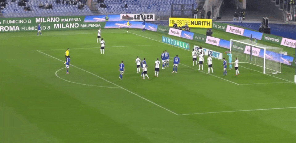 比赛第42分钟,斯特雷费扎禁区外落拓轰门,皮球飞上看台。