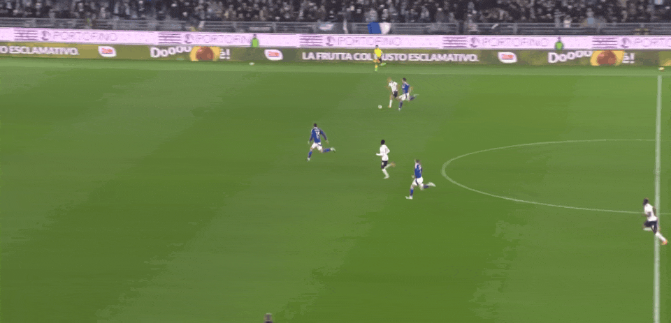 比赛第47分钟,斯特雷费扎左侧角球开向禁区,多塞纳头球攻门出奇横梁。