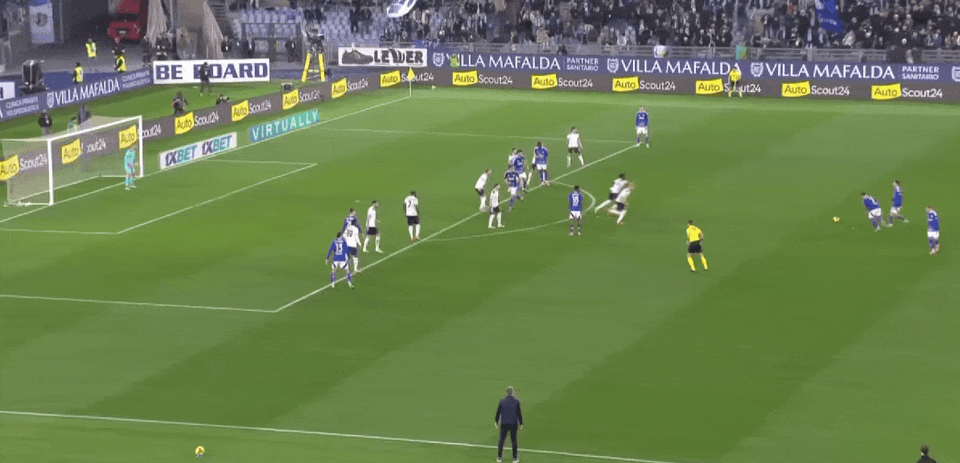 比赛第72分钟,斯特雷费扎右路送出传中,库特罗内后点头球破门,拉皆奥1-1科莫!